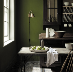 Top tip: De Nimes can offer a great anchor to a room, so using it on woodwork, such as kitchen units, can provide a darker, more complex atmosphere.